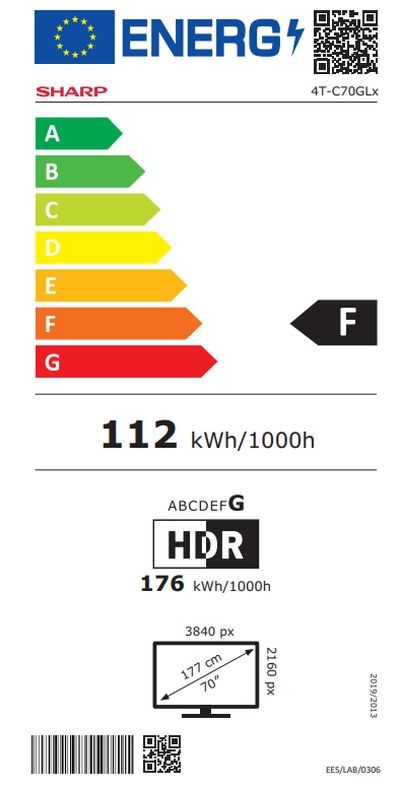 Размер на екрана, inch:70" (177.80 cm)
