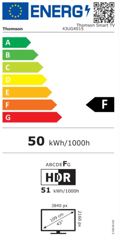 Телевизор Thomson 43" UHD Google TV; 3840 x 2160 (4K UHD), DLED, 60 Hz, Dolby Audio, Google Cast, DVB-T/T2/C/S/S2, HDR10, Wi-Fi, Bluetooth, LAN, HDMI 3 (2.1), USB 2 (2.0), AV IN, Hotel mode, Side Feet, Black