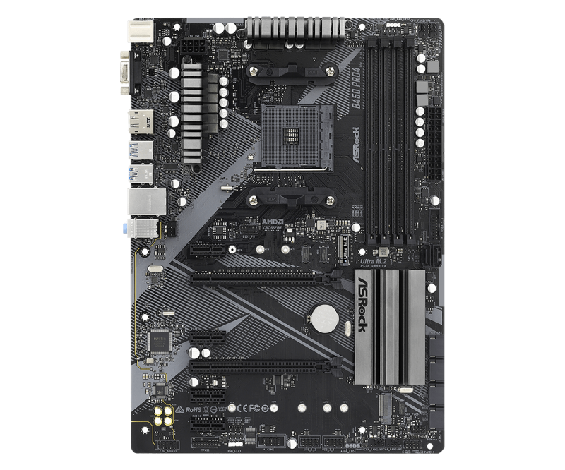 Дънна платка ASROCK B450 PRO4 R2.0 (AMD AM4, 4xDDR4, 2xM.2, VGA, HDMI, DP) ATX