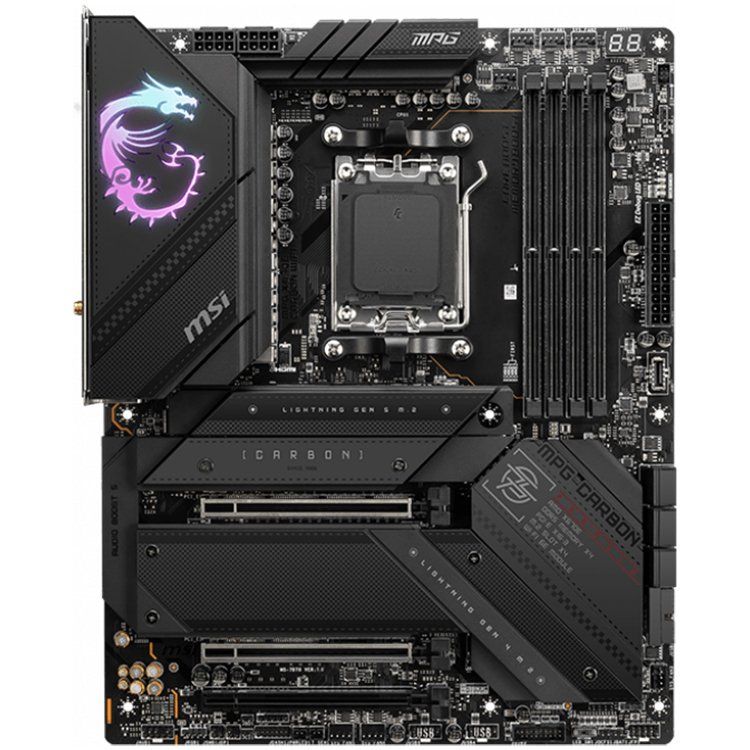 Дънна платка MSI MPG X670E CARBON WIFI (AMD AM5, 4x DDR5, 4x M.2, 2.5Gbps LAN, Wi-Fi 6E, HDMI, DP, USB Type-C) ATX